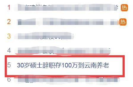 3月2日,#30岁硕士辞职存100万到云南养老#一词冲上百度热搜榜。