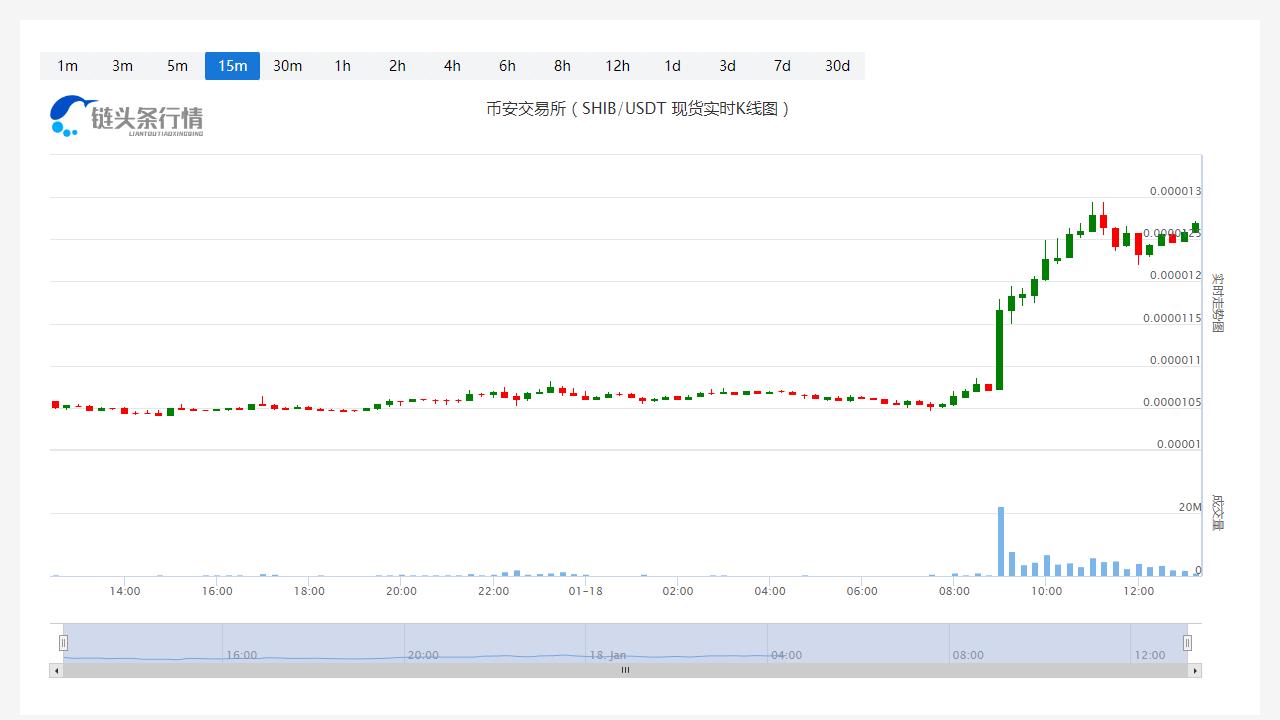 SHIB的价格每时每刻都有变动,要知道现在实时SHIB值多少人民币的话,最准的就是查看当天的SHIB实时行情价格, 20230118今日最新价格$0.0美元,折合人民币¥0.0 CNY。