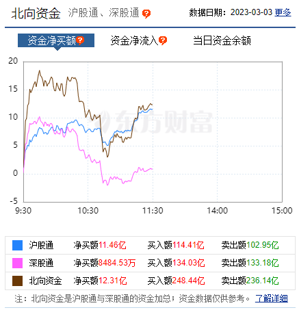 北向资金今日净流入,截至午间收盘,沪股通净流入11.46亿元,深股通净流入8485万元,合计净流入12.31亿元。