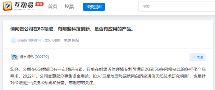 受上述消息影响,6G再次引发股民热切关注,海量提问被抛向A股上市公司:有6G技术储备吗?研发进展如何?产品能否用于6G通信领域?