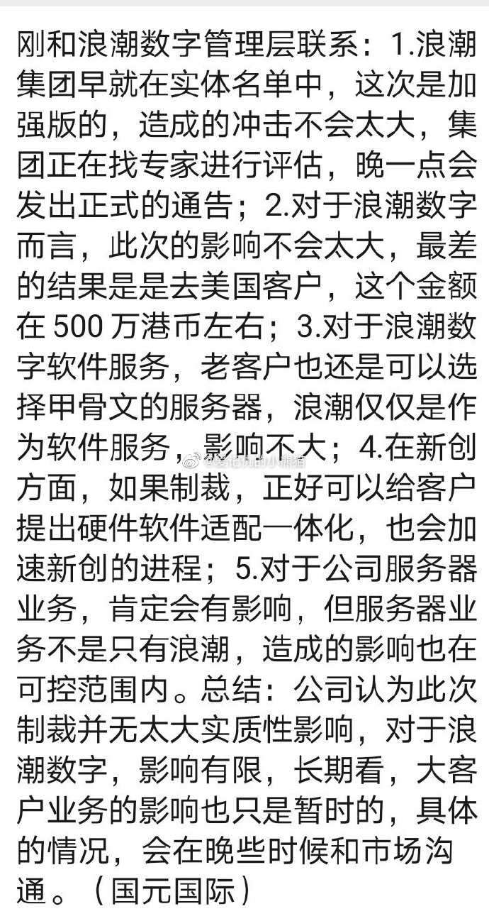 此外,今天市场最大事情是天降惊雷,浪潮跌停,相信原因不需要泰勒找给大家看了。美国商务部当地时间3月2日发布公告,以涉及国家安全等无理理由,将28个中国实体列入实体清单,包括第四范式、 香港华大基因科技服务有限公司、浪潮集团、龙芯中科、盛科通信等。