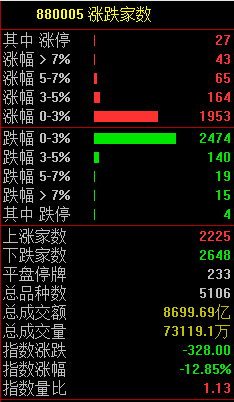 两市共2225只个股上涨,2648只个股下跌。北向资金净买入超20亿元。