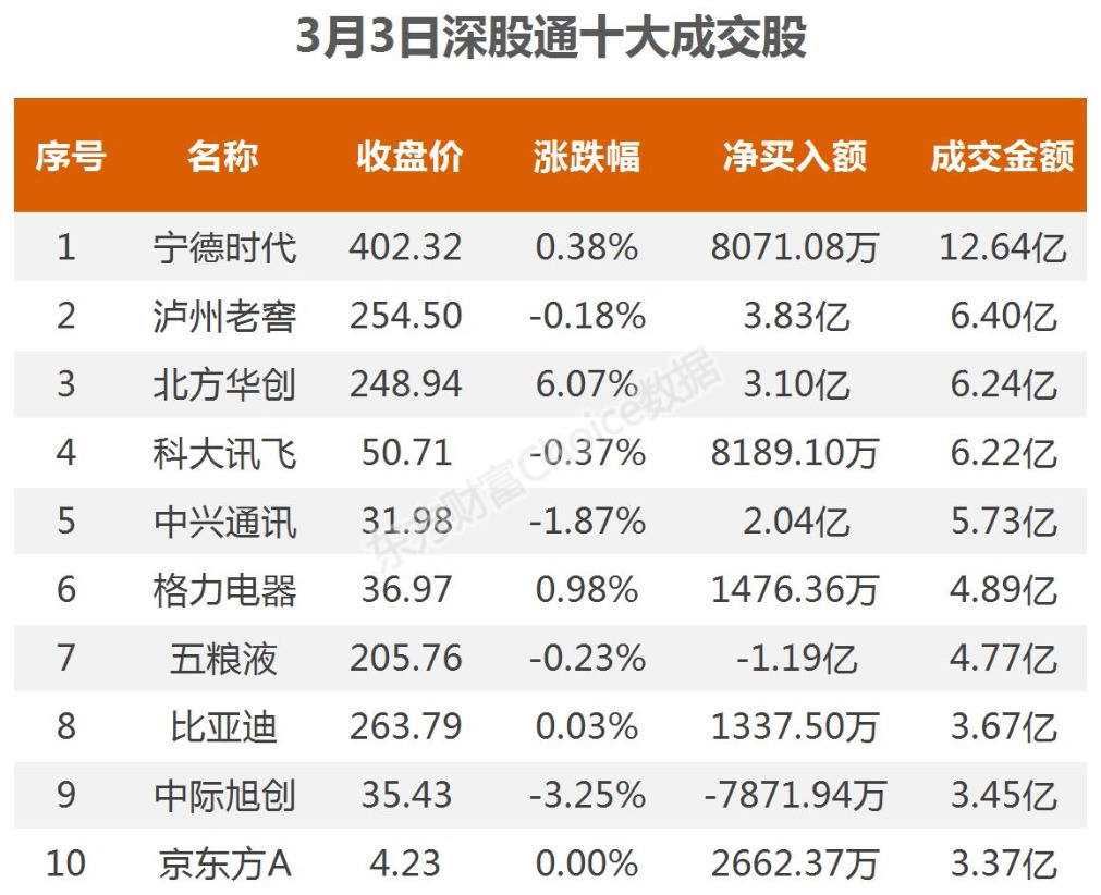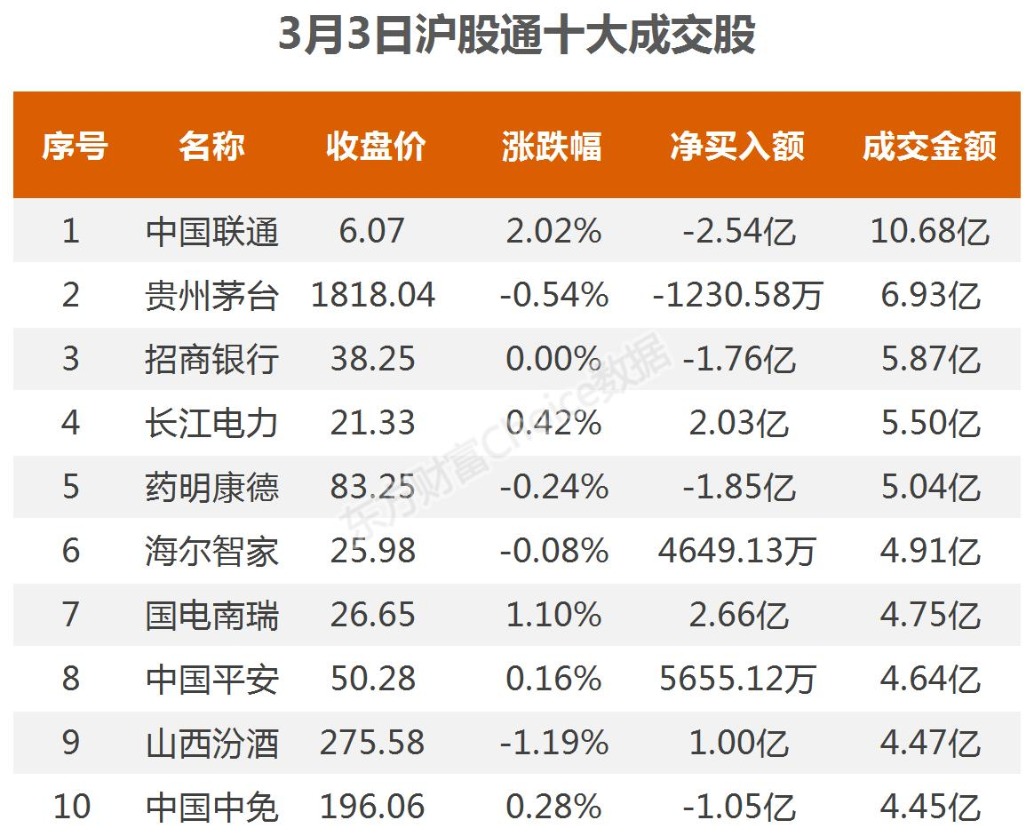 3月3日北向资金最新动向(附十大成交股)