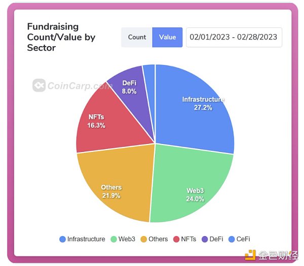 首先,融资的下行趋势终于得到了扭转。2月份,共有143笔加密交易,价值1.13亿美元,高于1月份的107笔。这是一个明显的看涨信号:风投对未来和潜在的上行空间越来越看好。