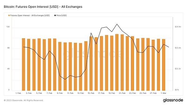 货币流动性趋紧。美国1月PCE核心物价通胀高于前值,3月16日加息50个基点的概率提升到30%。市场预计美联储将加息至5.5%,略高于之前的5.4%。美国或推迟到24年3月降息,而不是之前的23年12月。美元指数走高,对风险类资产价格施压。美股持续下跌,加密市场强于美股。
