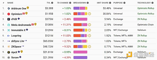 今天最大的 10 个 L2 中有四个是 ZK rollup - 来自 L2 BEAT