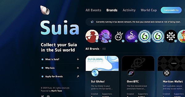 Suia是Sui上的去中心化身份POAP(出席证明)项目,目前在Devnet进行测试,用户不仅可以随意在项目主页发布自己的POAP供他人铸造,也可以领取他人的POAP,只要链接钱包就可以领取。