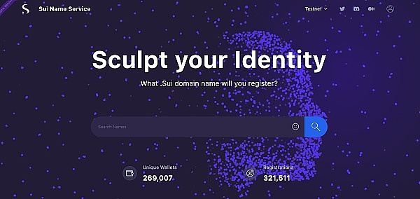 是一个Sui生态的域名系统,允许用户在 Sui 上构建他们的链上身份,并已合作Sui生态及其他生态的多个钱包,例如Bittkep、Martian、Fewcha、Suiet、Morphis和Ethos钱包,目前在alpha版本,据官网披露数据已登记的域名有32.14万,已连接过的钱包有26.88万。