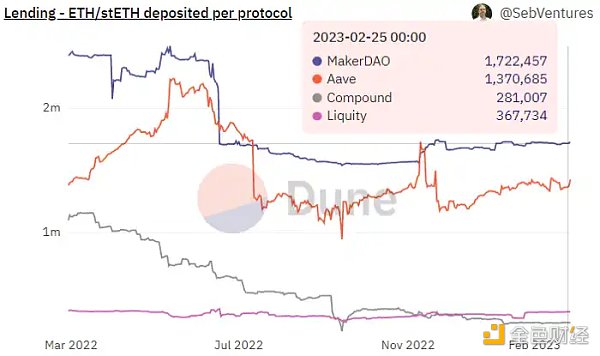 主流借贷协议内 ETH/stETH 分布变化:MakerDAO 份额最大