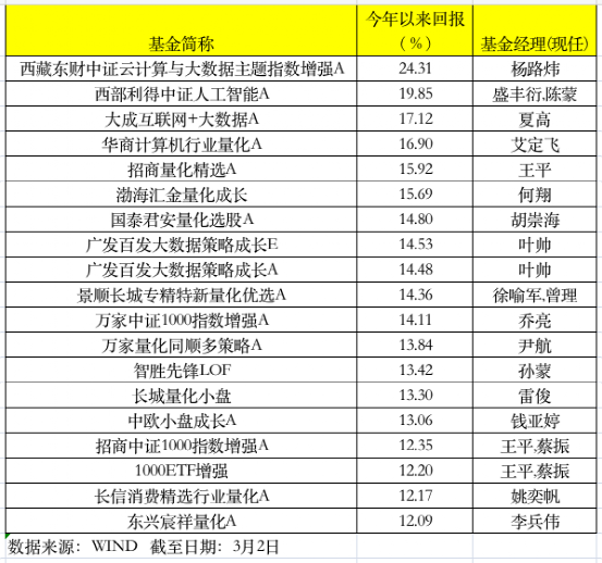 开门红!年内最高回报近25% 超九成量化基金实现正收益