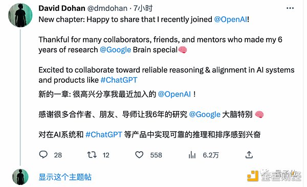 就拿刚刚过去的2个月来说,先是包括顾世翔(Shane Gu,‘让我们一步一步地思考’研究者)在内的至少4名谷歌大脑成员加入OpenAI;情人节时,Hyung Won Chung和CoT最早的一作Jason Wei携手组团叛逃OpenAI。