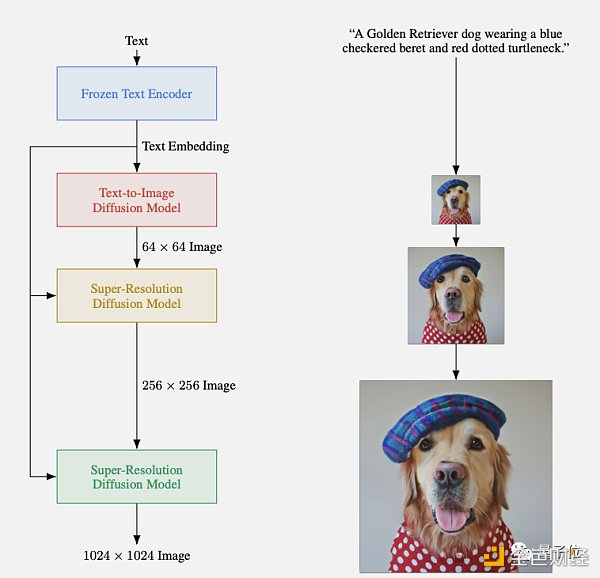 图像生成部分则用了一系列扩散模型,先生成低分辨率图像,再逐级超采样。