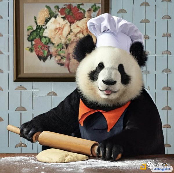 本文开头放的熊猫震惊表情包,就是朝Imagen输入“一只非常快乐的毛茸熊猫打扮成了在厨房里做面团的厨师的高对比度画像,他身后的墙上还有一幅画了鲜花的画”后,得出的一张要素完备的AI生成画作。(不好意思,请自行断句)