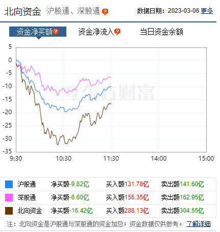 北向资金今日净流出,截至午间收盘,沪股通净流出9.82亿元,深股通净流出6.60亿元,合计净流出16.42亿元。