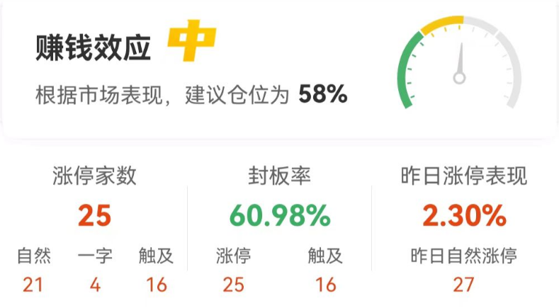 涨停股方面,截至午间收盘,共计25只个股涨停,另有16只个股一度触及涨停,封板率61%。