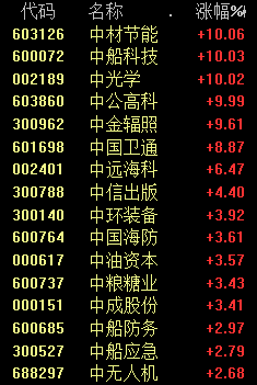 今天上午,“中字头”股票走势活跃,盘中大幅冲高,中材节能、中船科技、中光学等多股涨停。数据显示,截至上周五,“中字头”股票总市值逼近10万亿元。