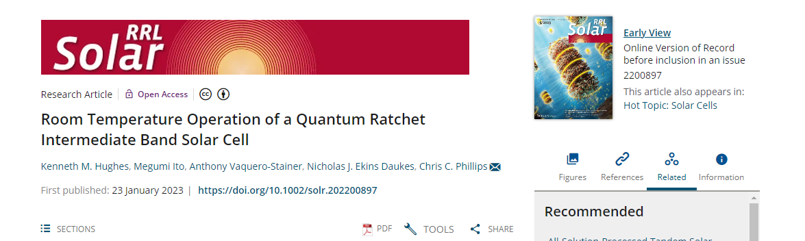 科学家们说,过去的研究已经开发了在低温下使用量子阱超晶格(QWSL)的QR-IBSC设备。而在这种电池结构的基础上,全新设计又增加了“棘轮带”(RB)状态的寿命(与存储光电子的时间长度有关),并使电池在室温下工作成为可能。