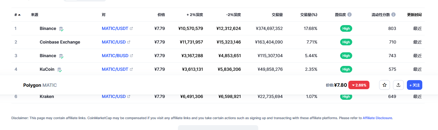 以上是关于MATIC价格、MATIC价格今日行情、一MATIC等于多少人民币的全部内容,欢迎持续关注世链财经资讯频道,第一时间掌握币圈最新资讯