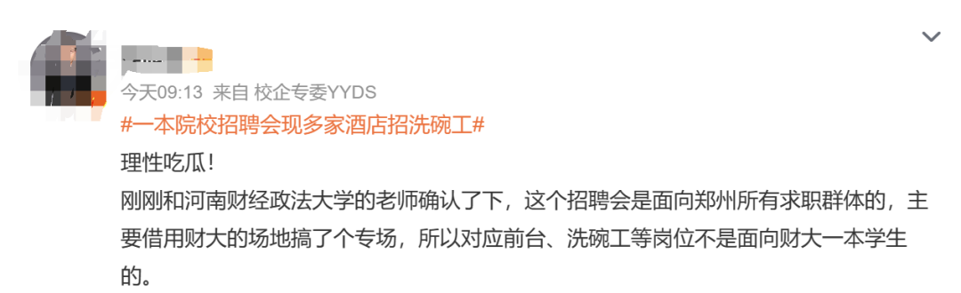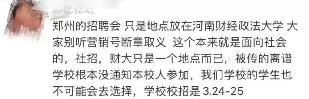 还有网友表示,要理性吃瓜。此次招聘会为社招,学校仅仅是提供了场地。