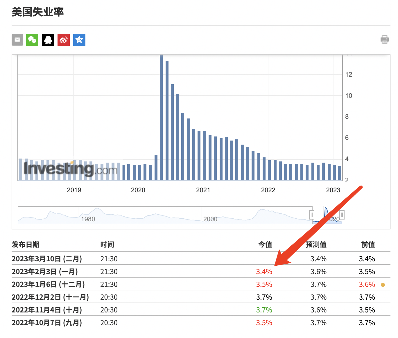 在正常情况下,就业市场不紧张的情况下,美国的自然失业率在4%-5%左右。2022年全年失业率为3.6%,2023年1月失业率在3.5%,2月是3.4%,这说明就业市场非常好,处于充分就业状态。换句话说,是工作需求远远超过劳动力供应,在这个情况下,要降薪资,时薪下调或者降低劳工成本是不现实的。