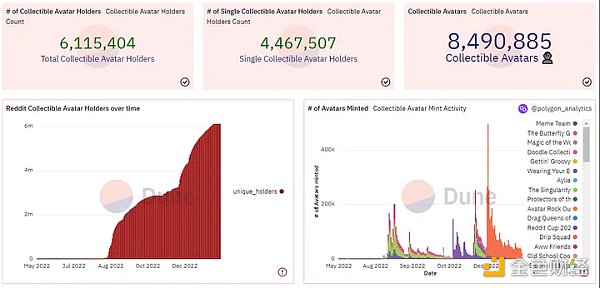 到目前为止,Opensea 聚集了 300 万用户,但 Reddit 在短短六个月内就已经聚集了超过 600 万持有者。当然,这些产生的钱包在 Polygon 网络上并不经常活跃。但 Reddit 已经有效地吸引了许多用户进入区块链生态系统。
