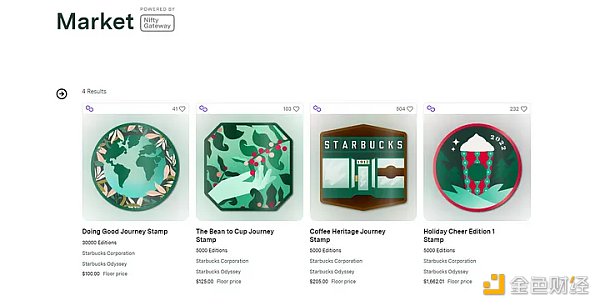 邮戳 NFT 可以在星巴克自己的市场上交易。为了改善用户体验,该市场提供了入口服务,并设计了后端处理了 Gas 费用。用户可以在不需要了解区块链的情况下使用它。