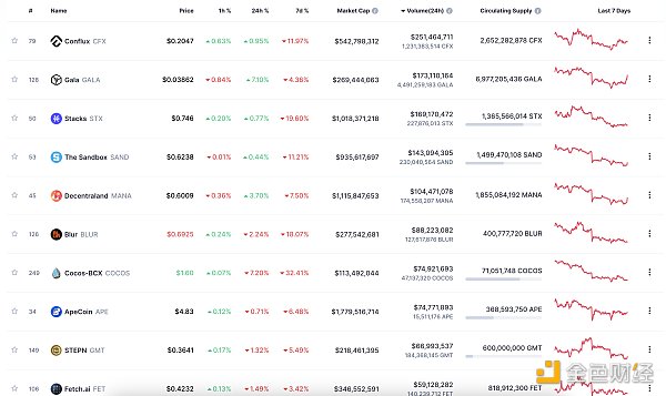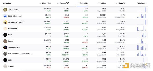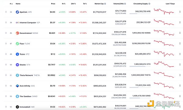 24小时NFT交易量、交易量前十项目 数据来源:Coinmarketcap