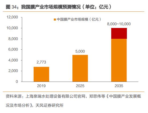 据郑思伟等《中国膜产业发展概况及市场分析》测算,预计到2025年我国膜产业市场规模将达5,000亿元,到2035年我国膜产业总产值将达8,000~10,000亿元,市场增量空间较大。