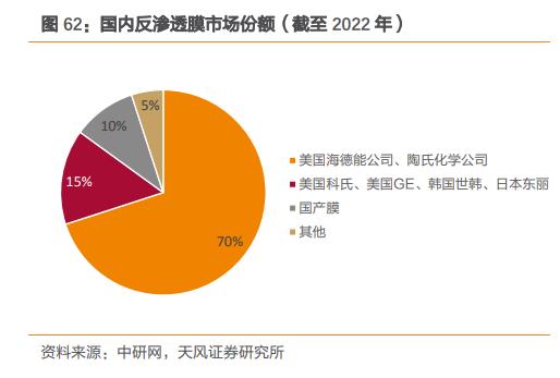 我国膜产品销售中,50%的市场被反渗透膜(RO)与纳滤膜(NF)占据。天风证券研究团队指出,以反渗透膜和纳滤膜为代表的分离膜或将具有较大的消费潜力。