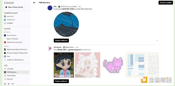 Context是一个让你能够监测目标加密钱包的NFT活动的平台,确保你始终能通过平台的信息流或导航栏了解你所关心的人的最新NFT动态。