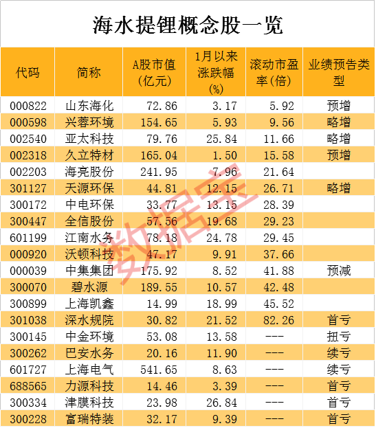 1.6万倍的可开采锂储量 海水提锂项目正式落地!4只概念股市盈率不足20倍