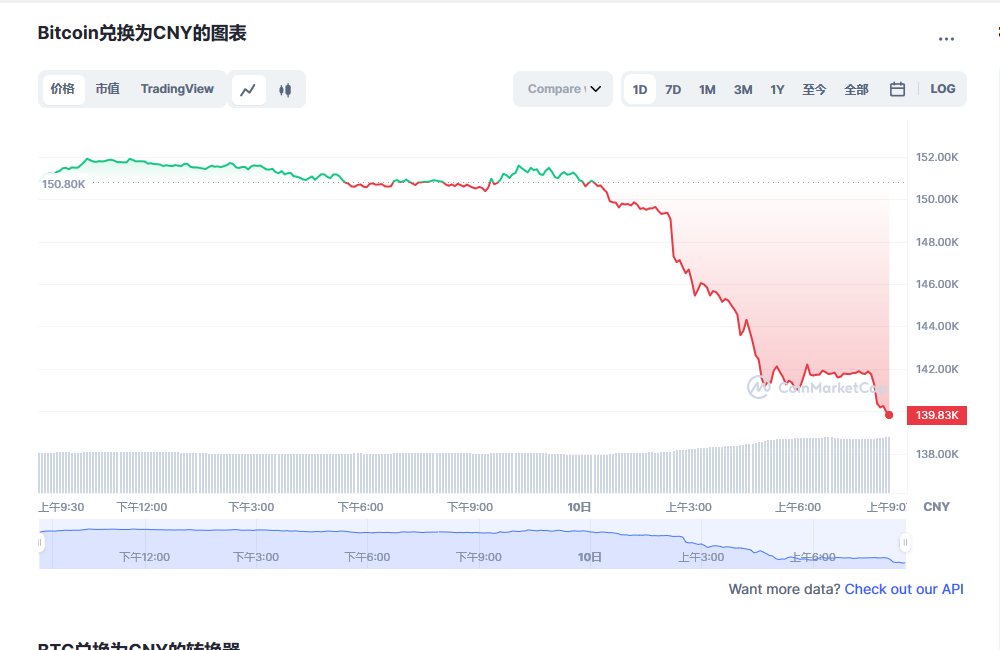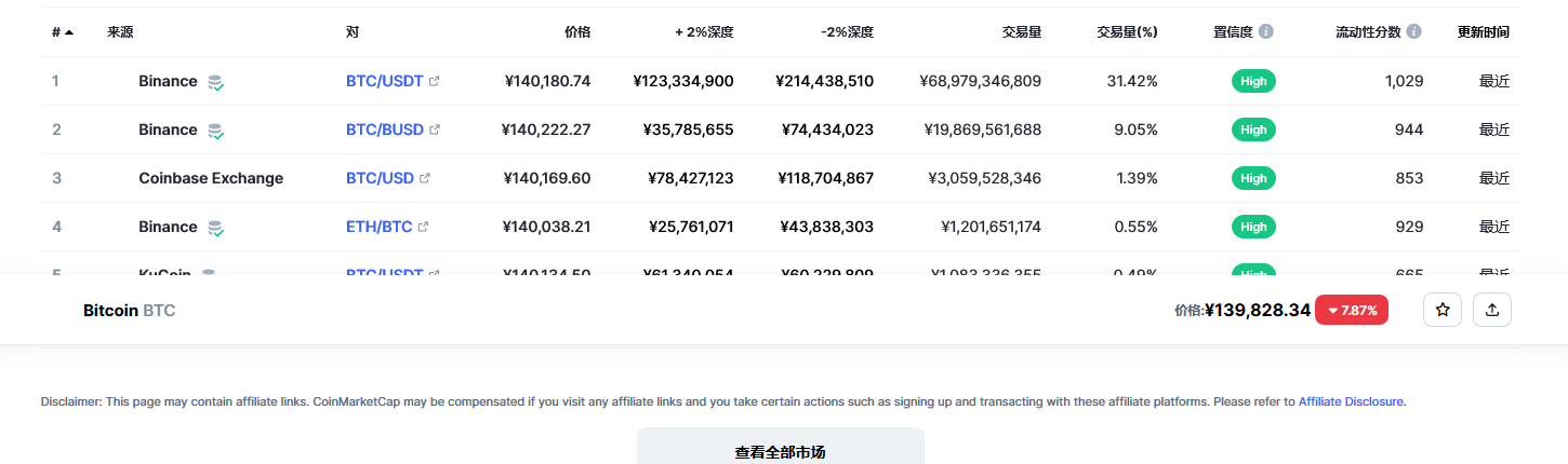 导读Bitcoin 今日价格 为 ¥140,098 CNY,其 24 小时的交易量为 ¥219,506,254,228 CNY。 我们会实时更新BTC兑换为CNY的价格。 Bitcoin 在过去 24 小时内下跌了 7.44。 目前的 世链财经 排名为第 #1 位