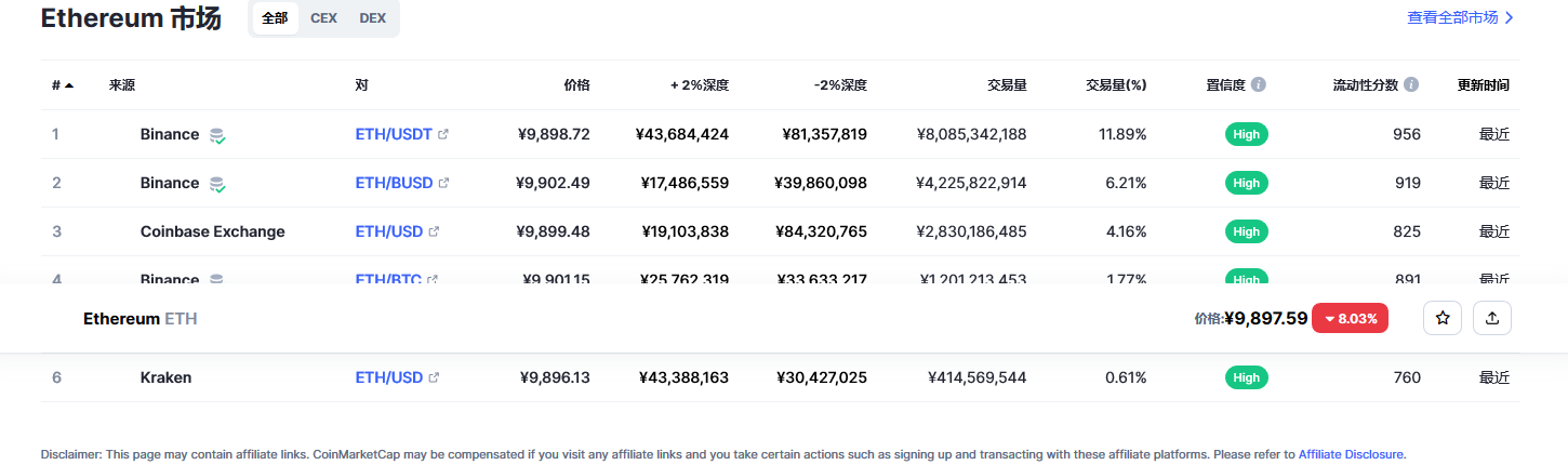 鉴于以太坊是仅次于比特币的第二大加密货币,因此可以购买以太坊,或在几乎所有主要加密货币交易所使用 ETH 交易对。一些最大的市场包括: