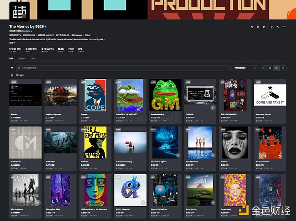 Punk6529 的 Memes 系列也采用了 ERC-1155。如果这些 NFT 都是一个个独立的 ERC-721 项目,NFT 玩家的购买体验要大打折扣,创作者也会有一堆的智能合约要管理