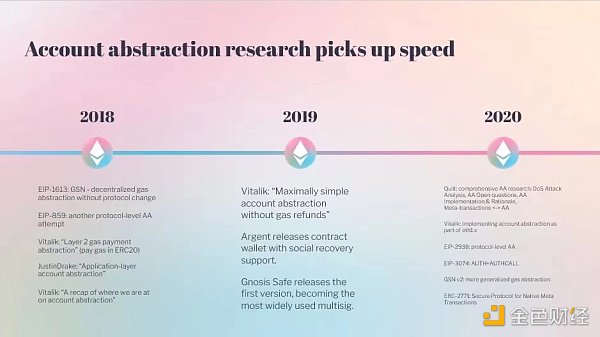 Weiss 说道:“帐户抽象是一个令人困惑的术语。这些账户是从网络中抽象出来的,它们不是从用户中抽象出来的。用户使用的是一个非常具体的钱包,它能做非常具体的事情。从用户的角度来看,更像是使用一个智能账户。”