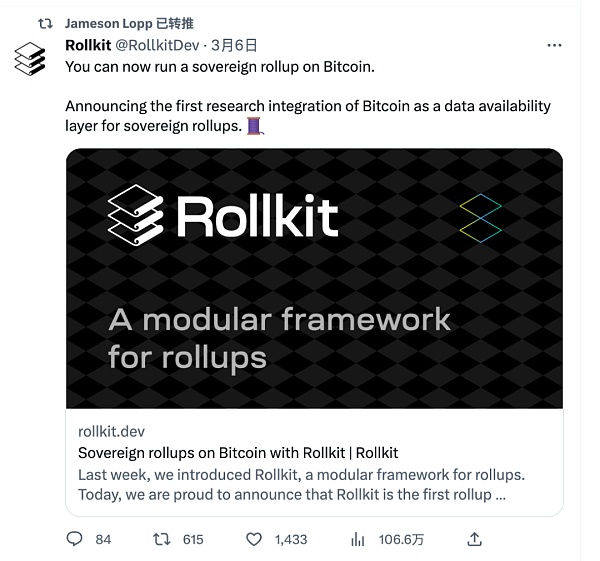 近日,知名比特币最大主义者(BTC maxis)Jameson Lopp 转发了基于比特币网络建立主权 rollup 的想法,随后该想法在比特币以及以太坊社区内引起了大量讨论。