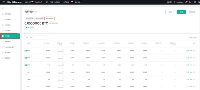 划转入口二:在合约资产页面点击对应品种的【划转】按钮
