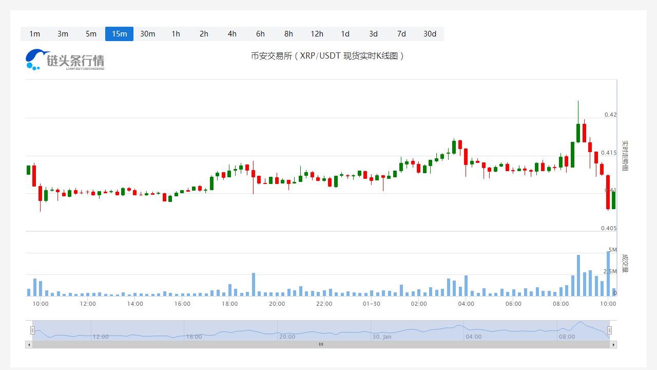 瑞波币的价格每时每刻都有变动,要知道现在实时瑞波币值多少人民币的话,最准的就是查看当天的瑞波币实时行情价格, 20230130今日最新价格$0.41美元,折合人民币¥2.77 CNY。