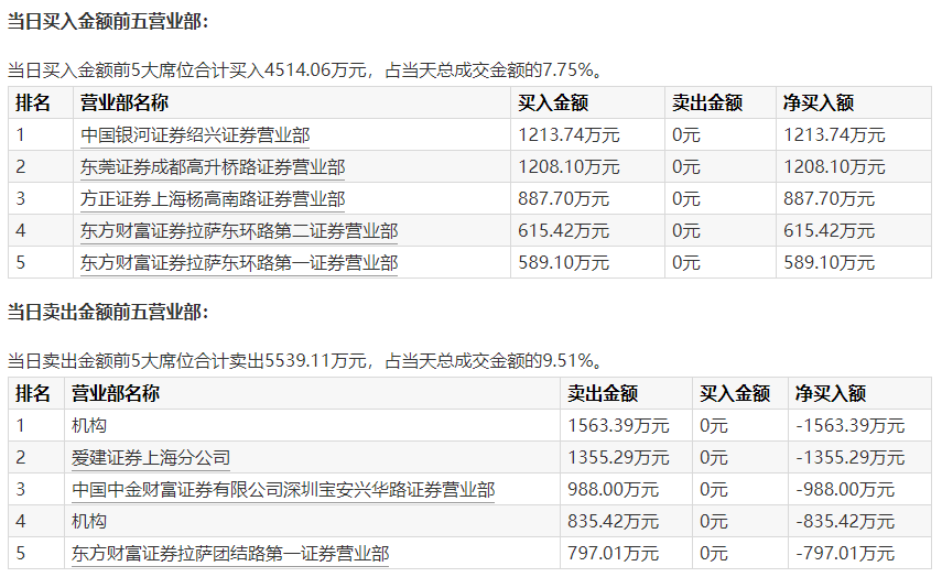 3月10日百利电气龙虎榜数据显示,上榜营业部席位全天成交1.01亿元,占当日总成交金额比例为17.27%。其中,买入金额为4514.06万元,卖出金额为5539.11万元,合计净卖出1025.06万元。具体来看,机构合计净卖出2398.82万元。此外,知名游资营业部现身龙虎榜,中国银河证券绍兴证券营业部、东莞证券成都高升桥路证券营业部分别买入1213.74万元、1208.10万元;爱建证券上海分公司、中国中金财富证券有限公司深圳宝安兴华路证券营业部分别卖出1355.29万元、988.00万元。