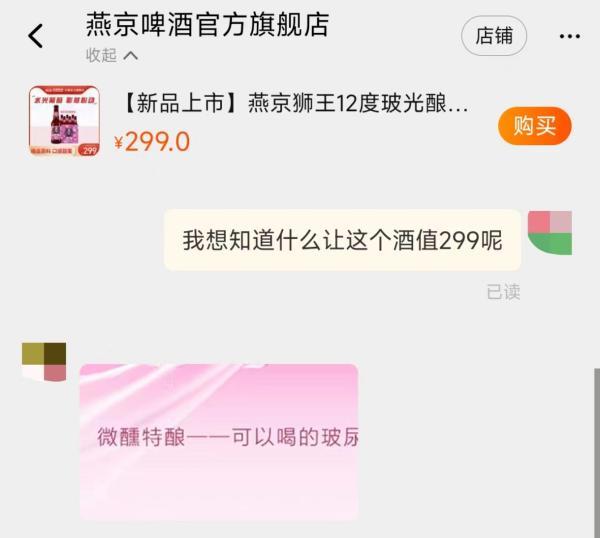来源:“燕京啤酒电商”微信小程序据媒体9日报道,燕京啤酒客服表示,该款啤酒“添加了食用级透明质酸钠,除了美容保湿的功效以外,还对治疗关节炎和伤口愈合有好处”。但10日上午,燕京啤酒客服一改说辞,称该产品没有美容效果。无论是燕京啤酒电商官方客服,还是燕京啤酒在京东、天猫平台的官方旗舰店客服,均回复称该产品添加红葡萄汁与食品级透明质酸钠(添加量20mg/L),是一款适口的产品。