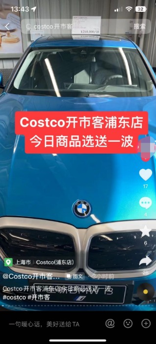 据新民晚报,尚未进入内场,就能见到两辆宝马新能源车停在通道边,这是“特供”浦东店的开业商品。其中一款i3报价26.8万元。有工作人员表示,门店销售的宝马车价格是有明显优惠的。