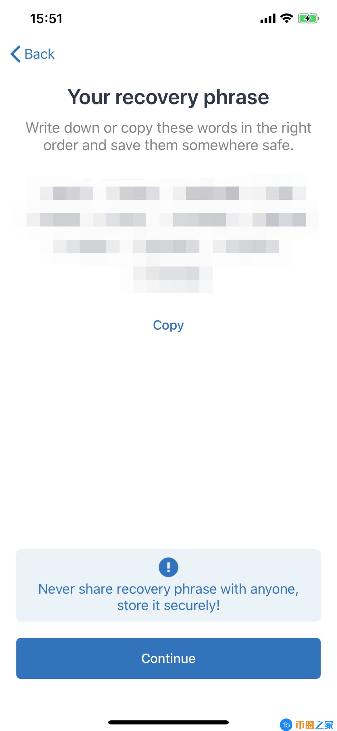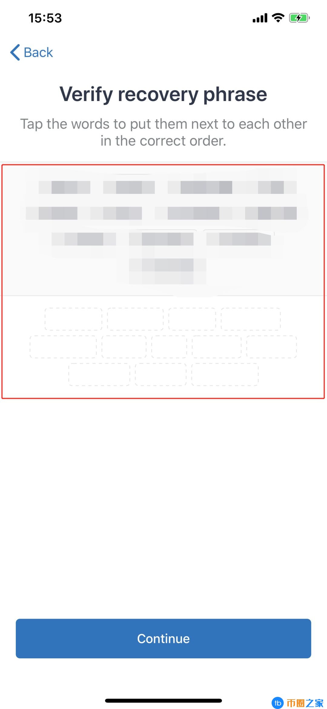 备份“助记词”:用笔或手机记录图中所示12个助记词,并进行助记词验证,钱包创建成功。