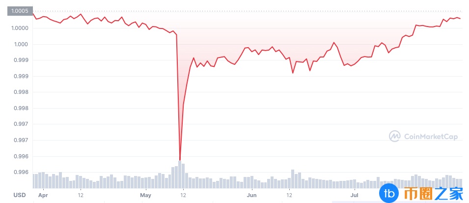 随着加密市场的崩盘,稳定美元货币的领头羊usdt的市值从5月初的831.7亿美元的高点迅速蒸发至近170亿美元,目前报约662亿美元,为2021年9月以来的最低水平;此外,由于泰拉崩盘,一些投资者陷入恐慌,从稳定的货币中撤出,这一度使usdt与美元短暂脱钩,最低价格跌至0.95美元。