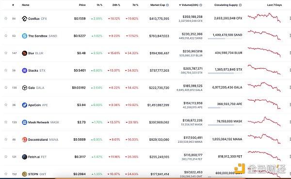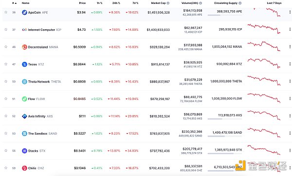 24小时NFT交易量、交易量前十项目 数据来源:Coinmarketcap