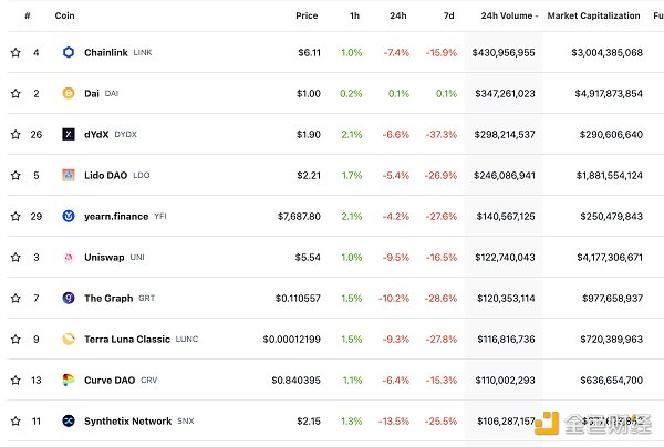 过去24小时去中心化交易所的交易量 数据来源:coingecko