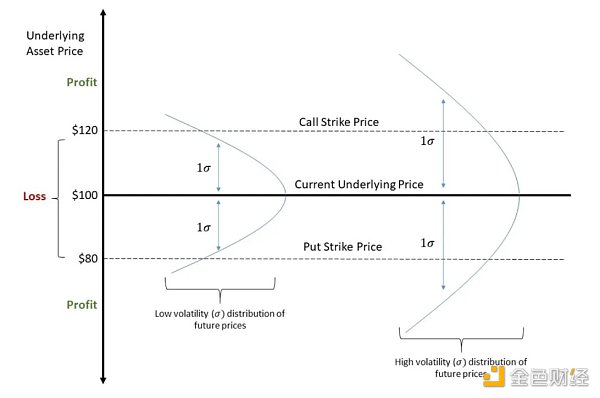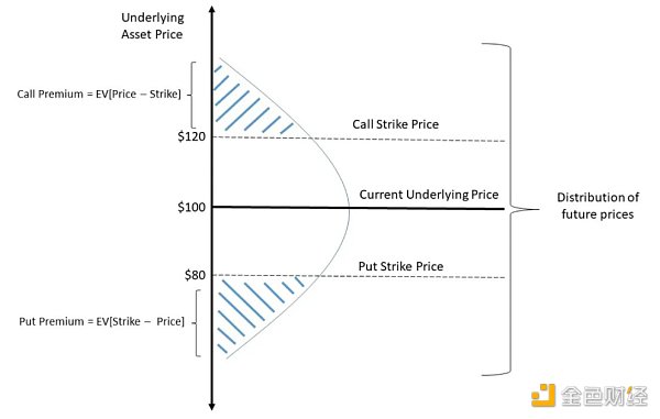 为了理解流动性头寸与期权类似的原因,让我们来看看传统金融的期权操作方式。期权是一种合约,买方有权在到期日之前或当天以预定价格购买或出售资产,但这并非是强制性的。当标的资产价格变为货币时,期权获得巨大价值的可能性被称为期权性风险(optionality),这就是为什么在判断期权作为投资的潜力时,期权的价格是一个无关紧要的指标。