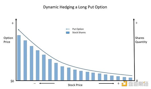 动态对冲的目标是在相反方向上重复期权的 Delta 回报,以对冲标的资产价格涨或跌的风险。因此,期权交易者只存在波动率风险,譬如 BSM 模型中定义的 Vega 风险。