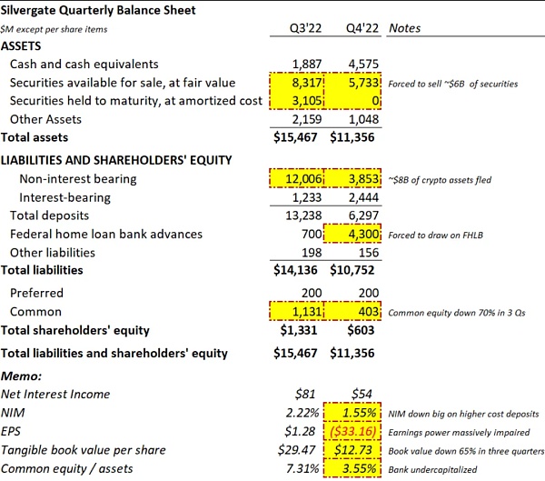 存款的急剧减少和 9 亿美元的已实现证券损失削弱了 Silvergate 的股东权益和盈利能力: