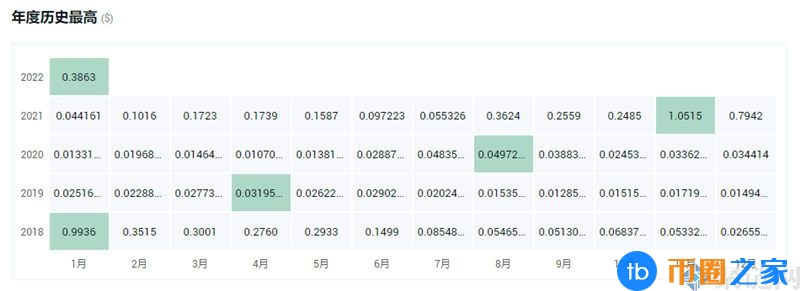 2018年1月6日,REQ币最高价为1.184美元,2022年1月为0.3864美元,2021年11月为1.0515美元,2020年8月为0.04972美元,2019年4月为0.03195美元。