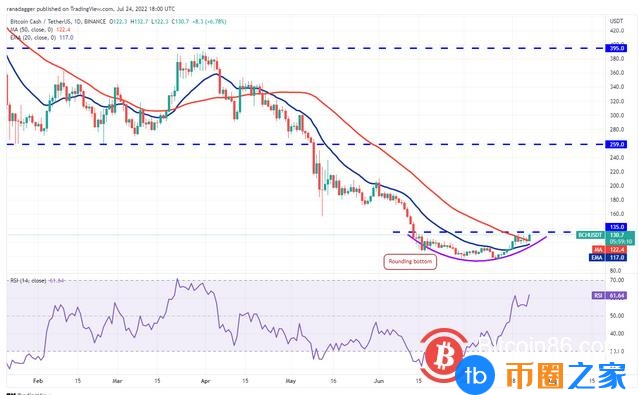 这几天的价格走势已经形成了一个圆底形态,当突破收盘于135美元上方时就完成了。如果出现这种情况,这表明BCH/usdt货币对可能已经触底至95美元。那么货币对可能上升到175美元的模型目标,然后上升到200美元。